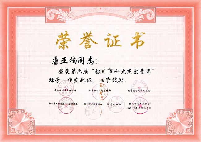 銀川市十大杰出青年稱號