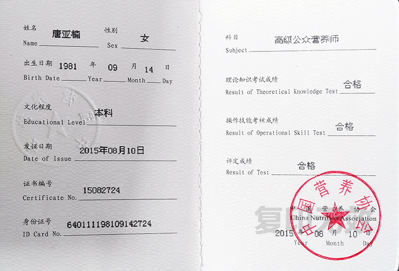 總經理唐亞楠獲得高級公眾營養師資格