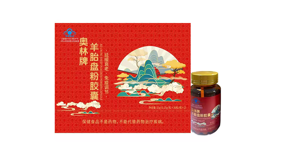 奧林牌羊胎盤粉膠囊本產品是以羊胎盤、羊胚胎為主要原料制成的保健食品。主要原料:羊胎盤、羊胚胎、維生素C粉、薏米干粉、淮山藥干粉功效成份及含量:每100g含:氨基酸0.3g、總氮7.7g保健功能:延緩衰老、免疫調節適宜人群:中老年人、免疫力低下者不適宜人群:少年兒童食用方法及食量:早晚各1次,每次2-3粒;空腹食用效果更佳規格:0.25g/粒保質期:24個月貯藏方法:置陰涼干燥處注意事項:本品不能代替藥物