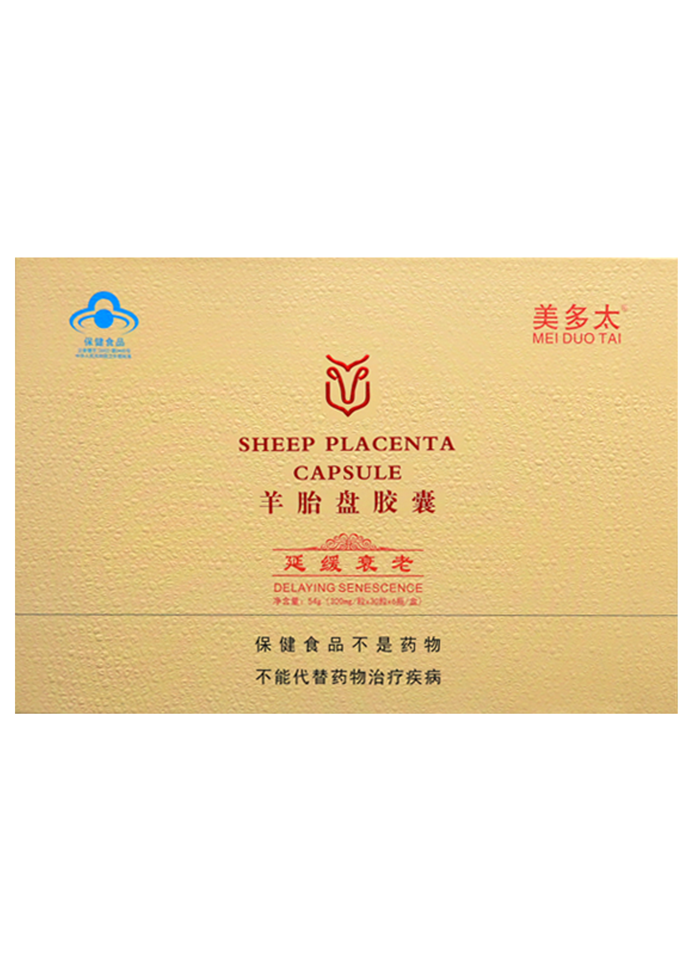 本品是以羊胎盤、淫羊藿、菊花、紅花為主要原料制成的保健食品,經(jīng)功能試驗(yàn)證明,具有延緩衰老的保健功能。